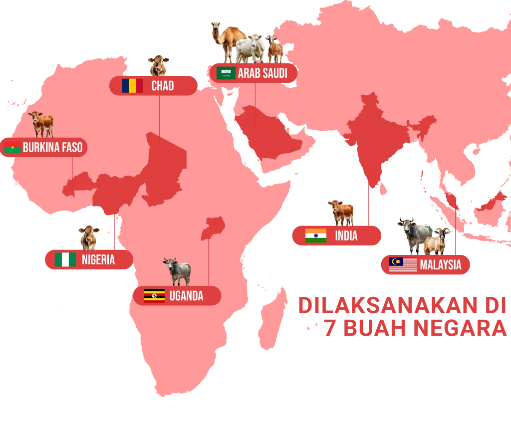 47,701 ekor haiwan sembelihan telah dimanfaatkan kepada saudara kita yang memerlukan di 7 buah negara.